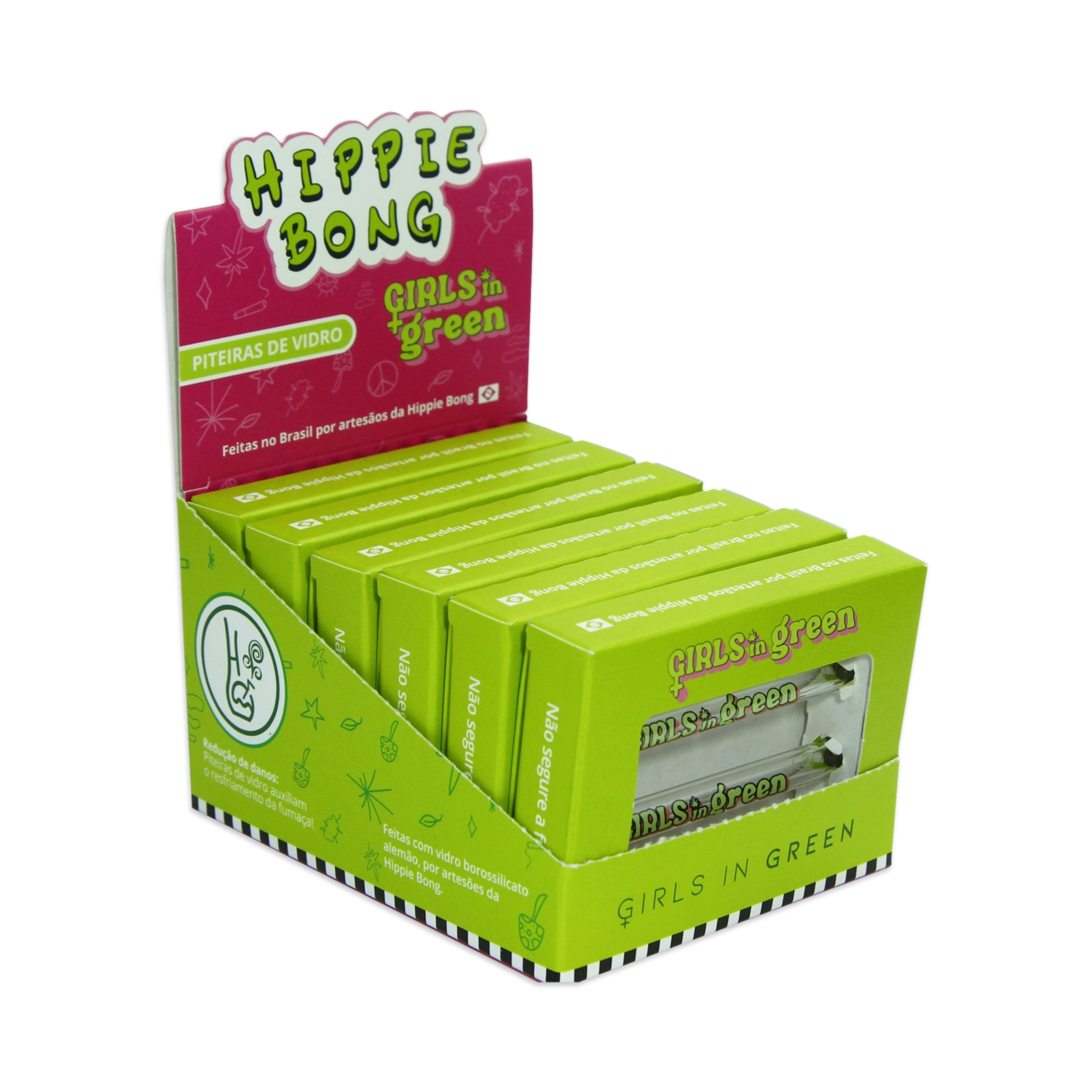 Piteira de Vidro Hippie Bong Girls in Green 5mm c/2